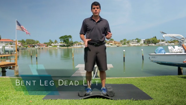 2. Bent leg deadlifts to fatigue, with half the weight used above (target 25 reps or more)